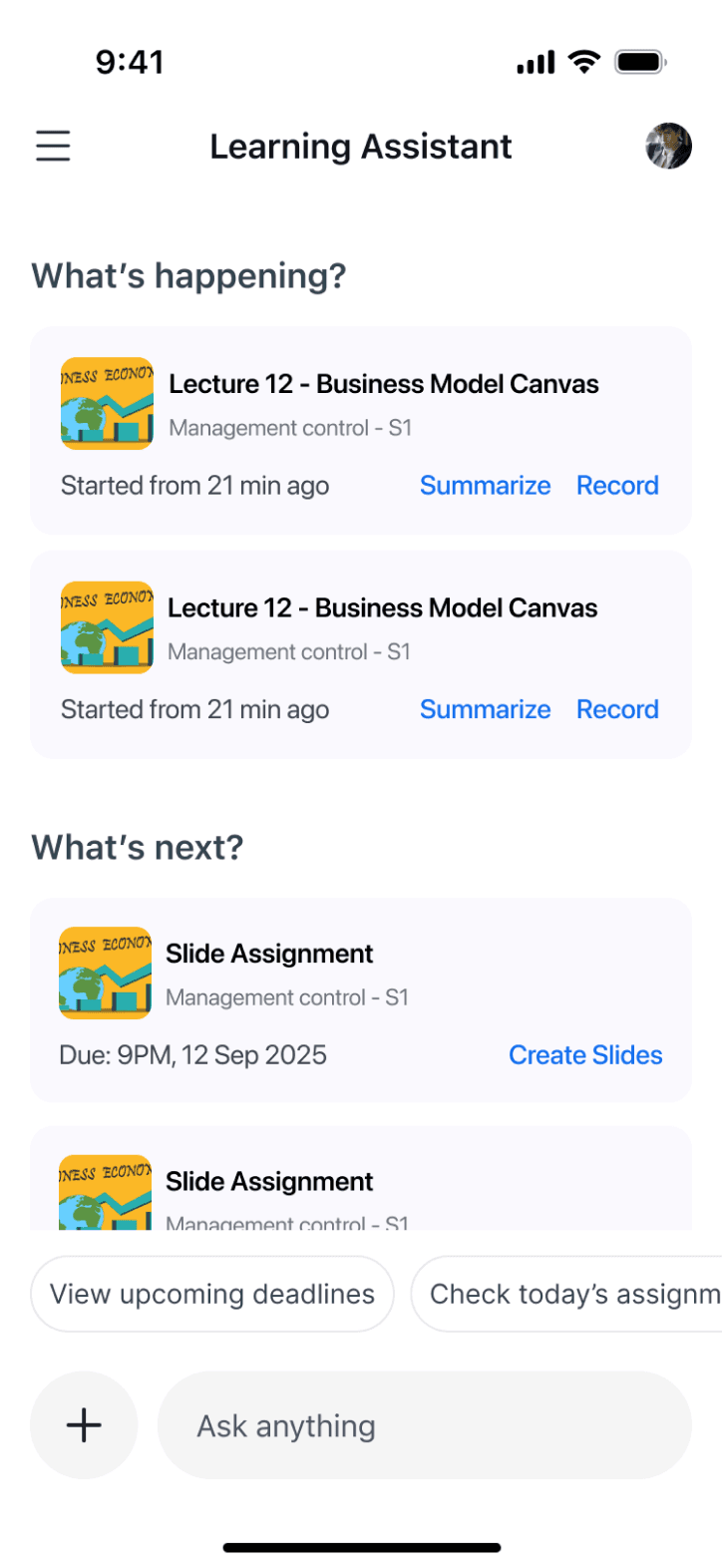 Chat with your AI study assistant to check grades, schedules, and assignments — instantly.
